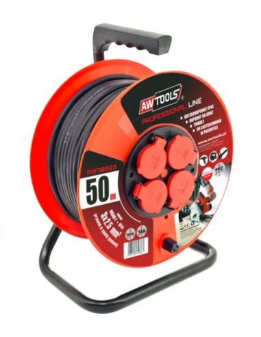 Profesjonalny przedłużacz bębnowy o długości 40 m z gumowym przewodem H05RR-F (3x2,5 mm²), obciążalność 16 A/3680 W i 4 gniazdami z osłonami IP44. Solidna metalowa rama, blokada obrotu bębna oraz bezpiecznik termiczny zapewniają wygodę i bezpieczeństwo pracy w trudnych warunkach.